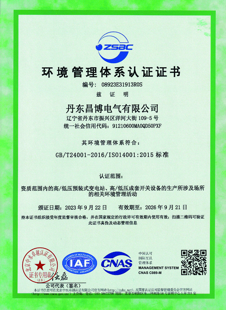 环境管理体系认证证书