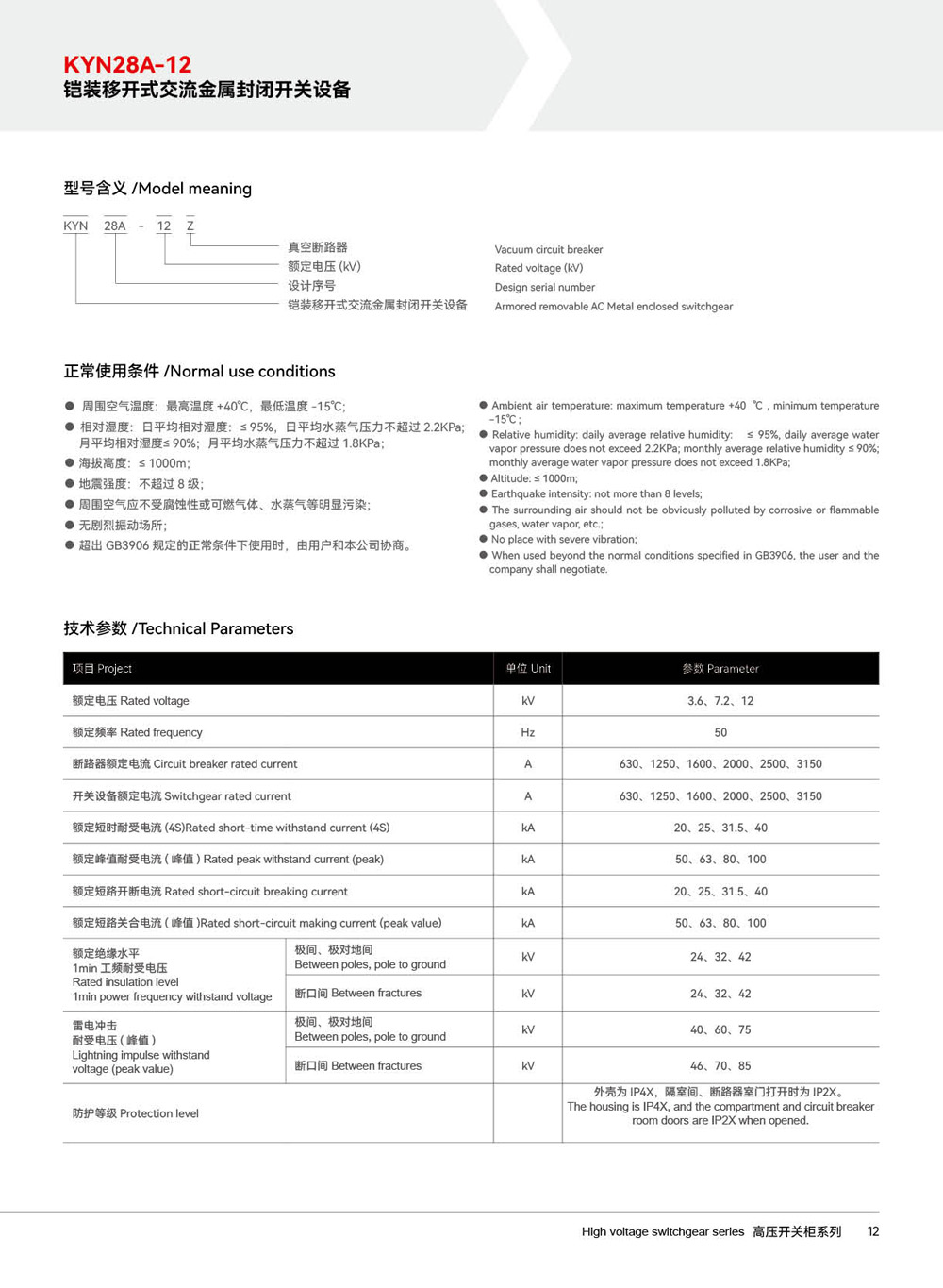 KYN28A-12铠装移开式交流金属封闭开关设备