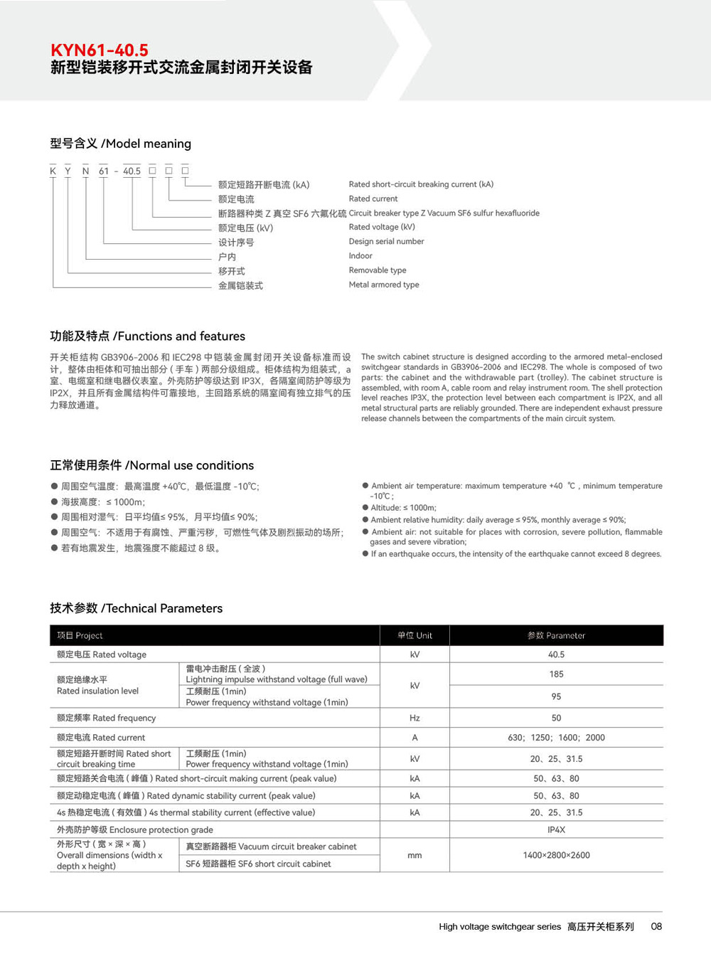 KYN61-40.5新型铠装移开式交流金属封闭开关设备
