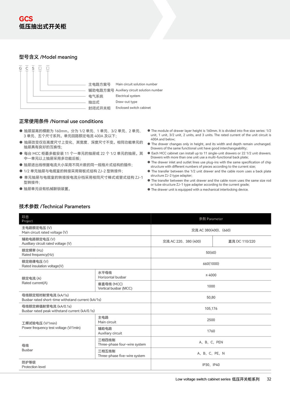 GCS 低压抽出式开关柜